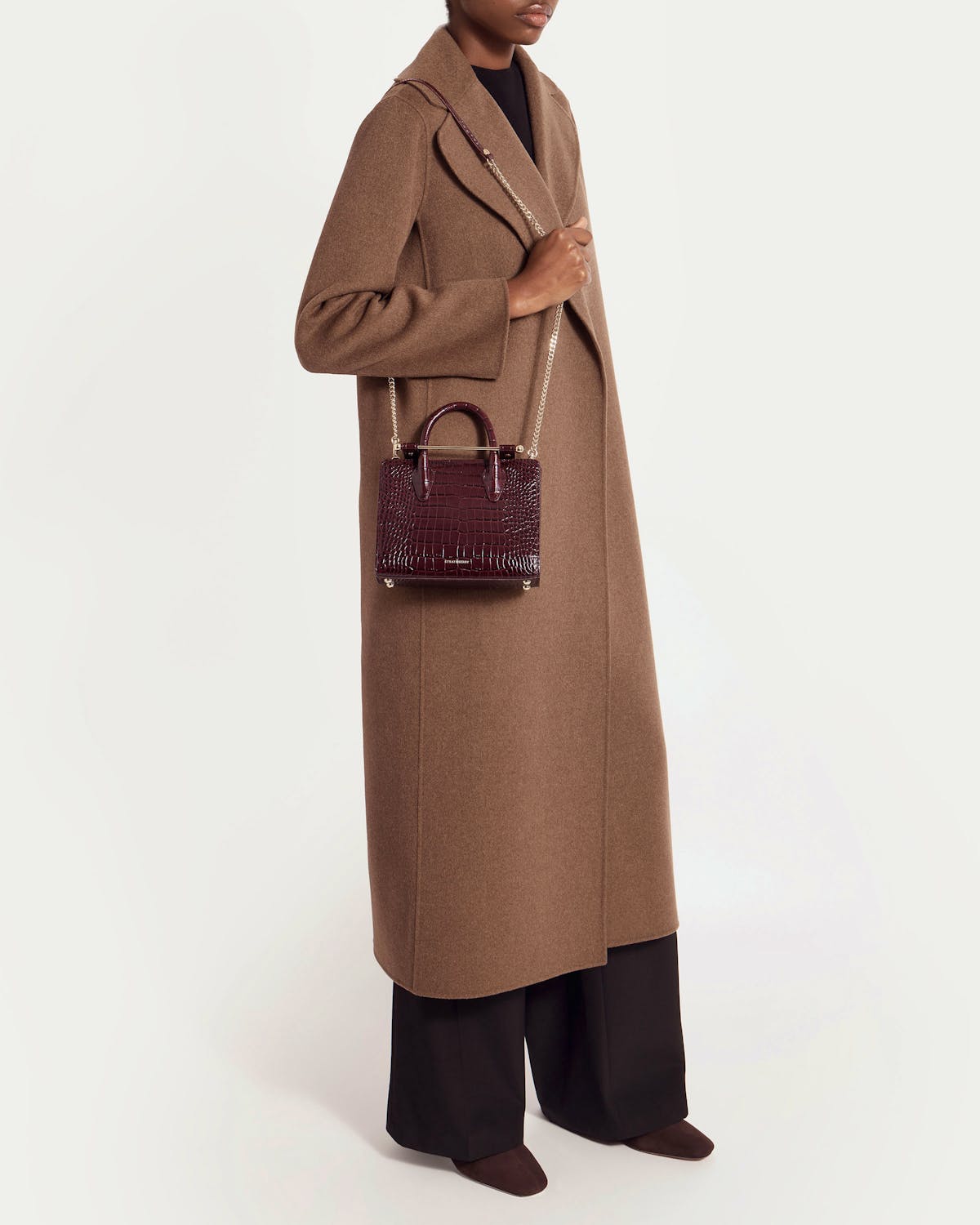 The perfect in-between. Inspired by a vintage music folio discovered by our founders, the Mini Tote introduces a highly requested size, bridging the gap between the Nano and the Midi. Defined by its understated silhouette, this timeless design features the signature Music Bar closure that elegantly secures the top handle. Handcrafted with versatility in mind, it can be carried by hand or styled crossbody with the detachable chain strap—ideal for everyday elegance.