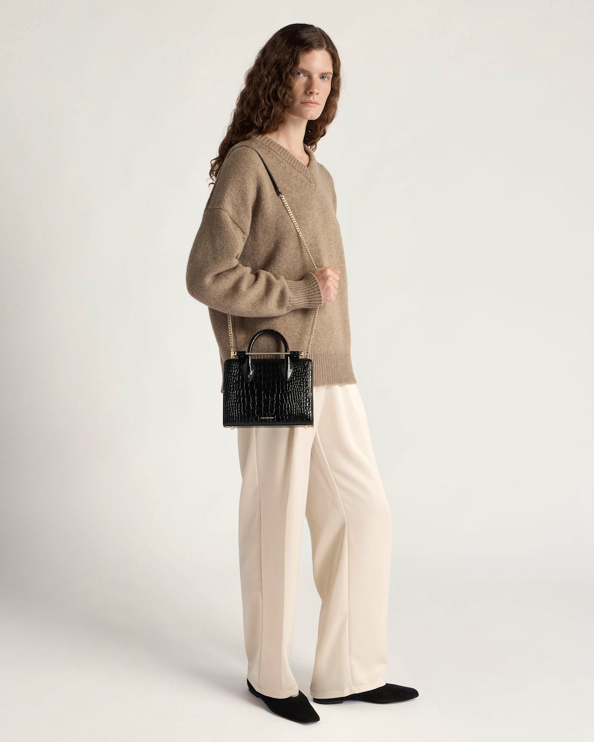 The perfect in-between. Inspired by a vintage music folio discovered by our founders, the Mini Tote introduces a highly requested size, bridging the gap between the Nano and the Midi. Defined by its understated silhouette, this timeless design features the signature Music Bar closure that elegantly secures the top handle. Handcrafted with versatility in mind, it can be carried by hand or styled crossbody with the detachable chain strap—ideal for everyday elegance.